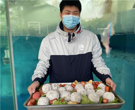 此外,同样来自北极的白鲸“莎莎”,也吃到了鳕鱼味的汤圆。它的汤圆不同于北极熊的汤圆,是由鳕鱼、多春鱼、柳叶鱼等多种鱼类组合,并搭配了富含微量元素的鱼胶特制而成,别出心裁且营养丰富。