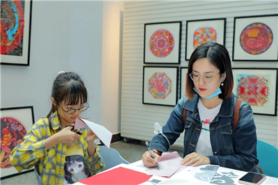 亲子体验活动现场,传承人讲述了藏羌剪纸和羊皮鼓舞的历史,并展示和演绎了两项非遗文化。在各位传承人的耐心教授下,大小朋友们很快进入角色,对极具民族特色的非遗文化充满了学习热情。最终,大家都出色地完成了自己的剪纸作品,收获满满。也在水磨古镇的和谐广场上完成了羊皮鼓舞的学习,并与羊皮鼓舞的传承人们击鼓载舞,盛是欢乐。