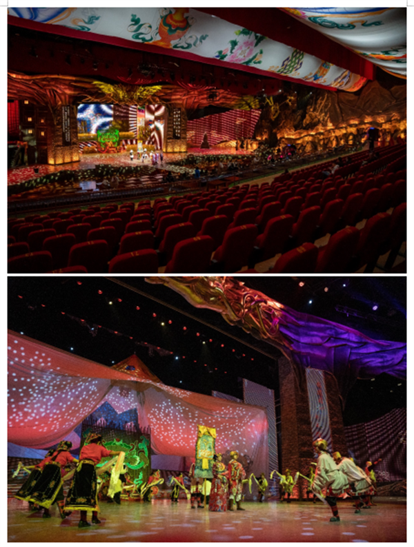 演出地址:四姑娘山风景区长坪沟口,斯古拉文旅城“容中尔甲演艺中心”。