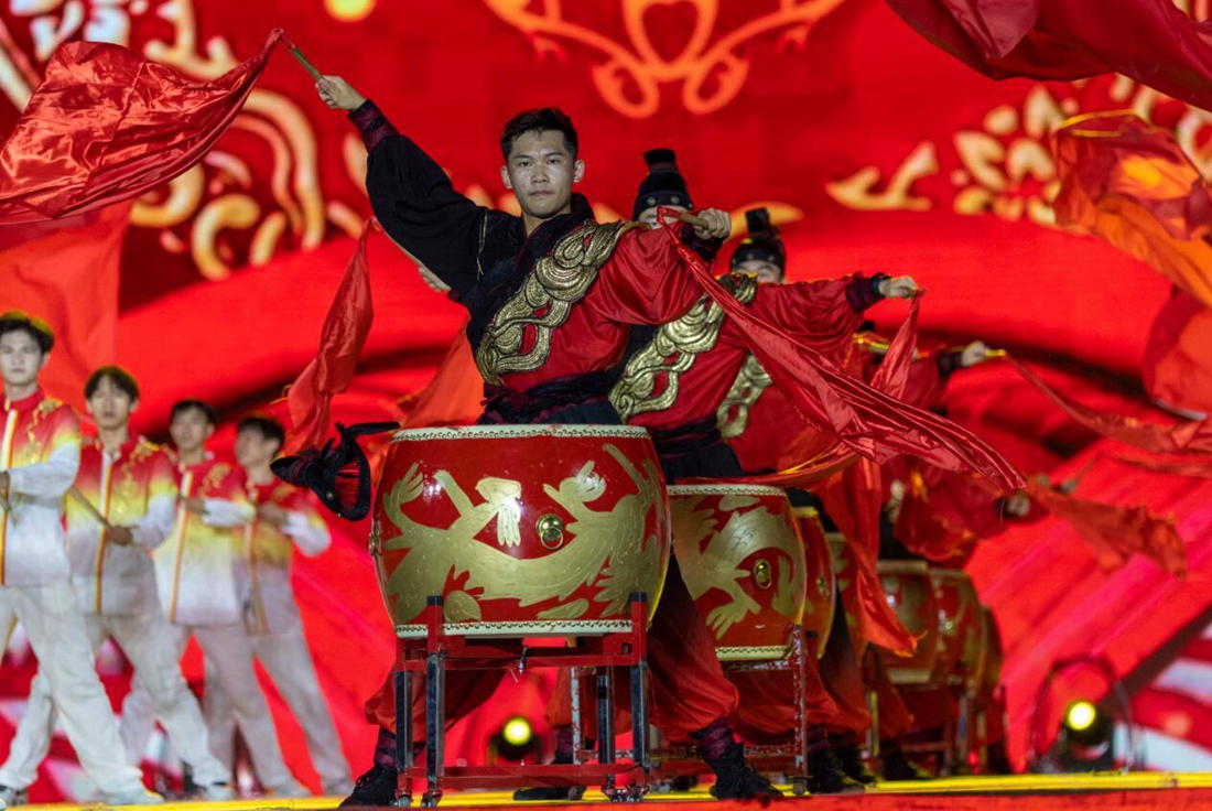 开幕式上,擂鼓为运动健儿助威。