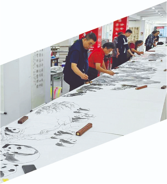 特别值得关注的是,本次展览的重头戏——画心高1.25米、长20米的国画长卷《公园城市 幸福成都》将惊艳亮相。该幅画卷在市委领导直接指导下,由市文联组织,市美术家协会、市书法家协会12位艺术家集体创作,以中国传统绘画方式将不同时间、不同空间景物巧妙融合在同一个画面中,从右至左徐徐展开,大气磅礴。憨态可掬的大熊猫、巍峨的西岭雪山、杜甫草堂、武侯祠等一众成都城市文化名片相继出现,全面展示成都在全面建设践行新发展理念的公园城市示范区过程中取得的辉煌成就,体现园中建城、城中有园、推窗见绿、出门见园的公园城市优美形态,彰显“雪山下的公园城市、烟火里的幸福成都”的城市风光和人文风情,这也是以艺术方式表达重大主题的创新实践。