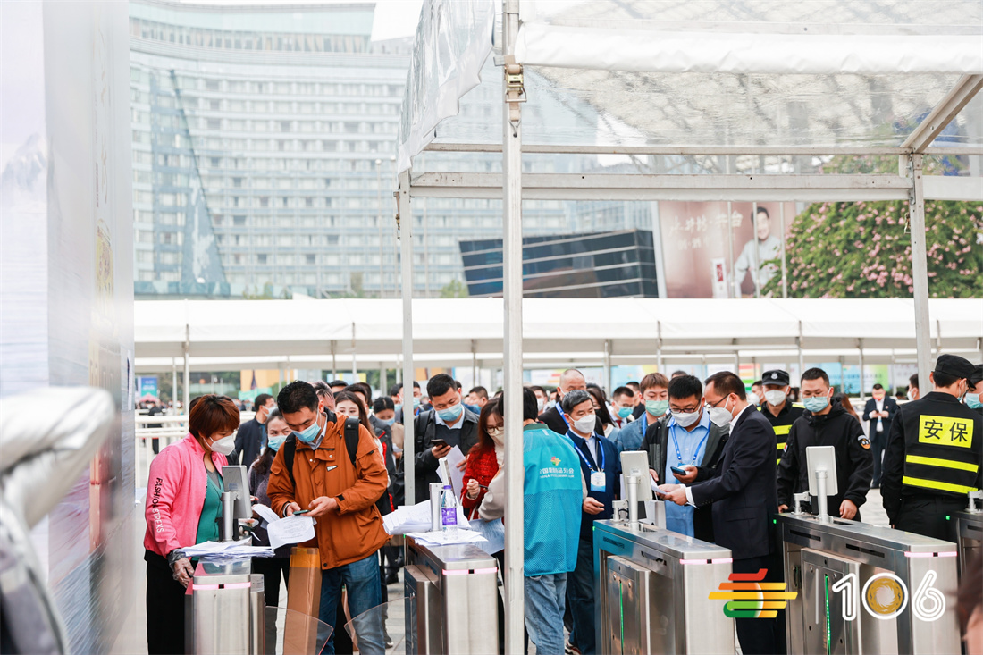 第106届全国糖酒会现场,参展观众严格遵守防疫政策,有序入场