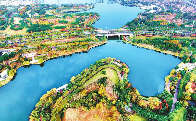 12月22日,航拍仁寿县冬日暖阳下景色优美的湿地公园。近年来,仁寿县将生态建设融入城市发展,不断加大对城市公园的建设力度,先后高标准建设了一大批具有休闲、娱乐、健身等多功能的生态公园,让群众共享“推窗见绿、开门见景”的生态红利。 潘建勇 摄(视觉四川)