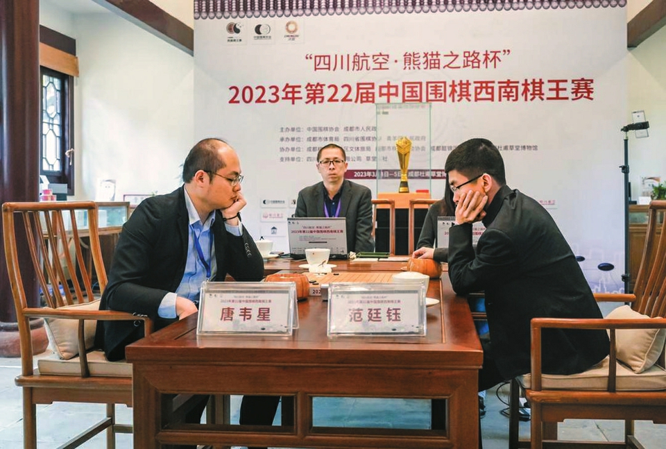 春日的杜甫草堂,生机盎然,有22年历史的西南王赛事也迎来了新的冠军。3月5日,“四川航空·熊猫之路杯”2023年第22届中国围棋西南棋王赛落下帷幕。经过两天四轮激烈的角逐,范廷钰九段笑到了最后,他在决赛中击败同为世界冠军的唐韦星九段,成为本届西南棋王赛的冠军。