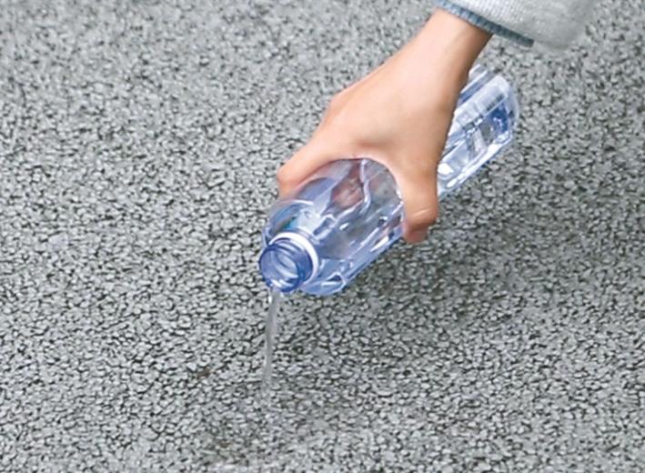 在新都香城体育中心外,围绕场馆一周的灰沥青混凝土地面看似平平无奇,但却内有乾坤。打开瓶盖,将水缓缓倒在地上,神奇的一幕出现了:流水在接触到地面的一瞬间便消失无踪。干爽的地面,就好像从来没有水浸入过。“这些就是海绵地面,占地面积6.4万平方米,具有渗透积水的作用。”大运会新都赛区水球场馆中心有关负责人告诉记者,香体中心是成都市所有大运场馆中首个应用海绵路面的场馆,这样的路面,不仅可以高效渗水、透水,保持路面干爽,并且可以通过路面将自然雨水留存。