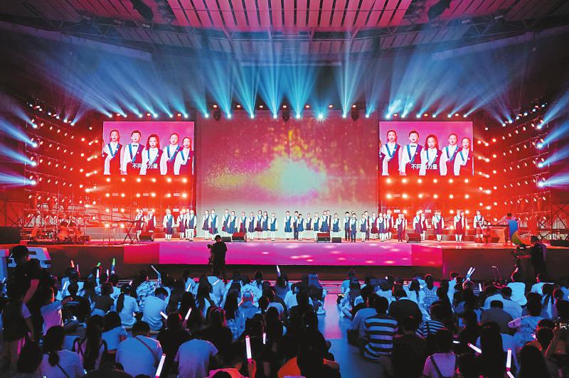 5月4日,距离成都大运会开幕还有85天,“青春有约 唱响大运”五四青春歌会在成都大学体育馆举行。来自北京大学、清华大学、上海交通大学、厦门大学、四川大学等全国50所高校的1000余名大学生同台唱响大运歌曲,讲述青春故事,用音乐向全球青年大学生发出热情邀请。