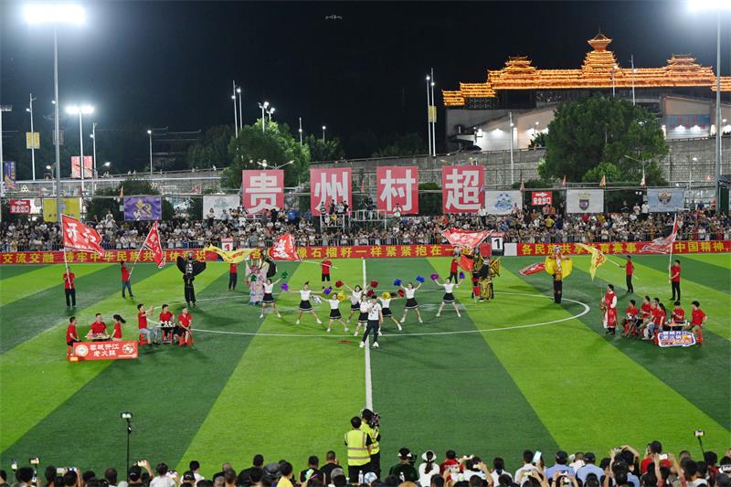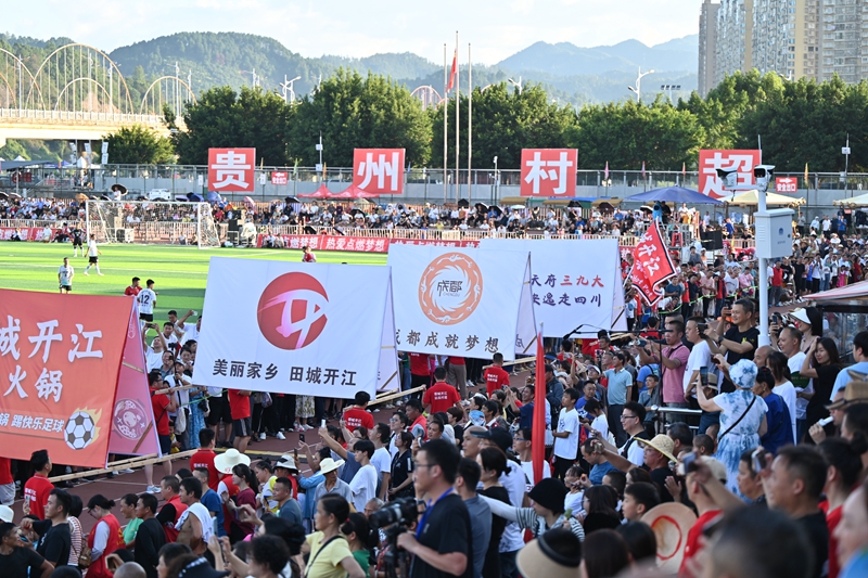 四川新闻网-首屏新闻贵州9月17日讯(记者 余开洋)“开江雄起!开江雄起……”9月16日晚,一声声“雄起”声响彻在贵州榕江村超足球场。当天晚上18时30分,贵州榕江“村超”全国美食足球友谊赛(第一季)“超级星期六”A类比赛继续进行,来自四川的“蓉城开江老火锅队”对战“贵州西秀酸汤队”。